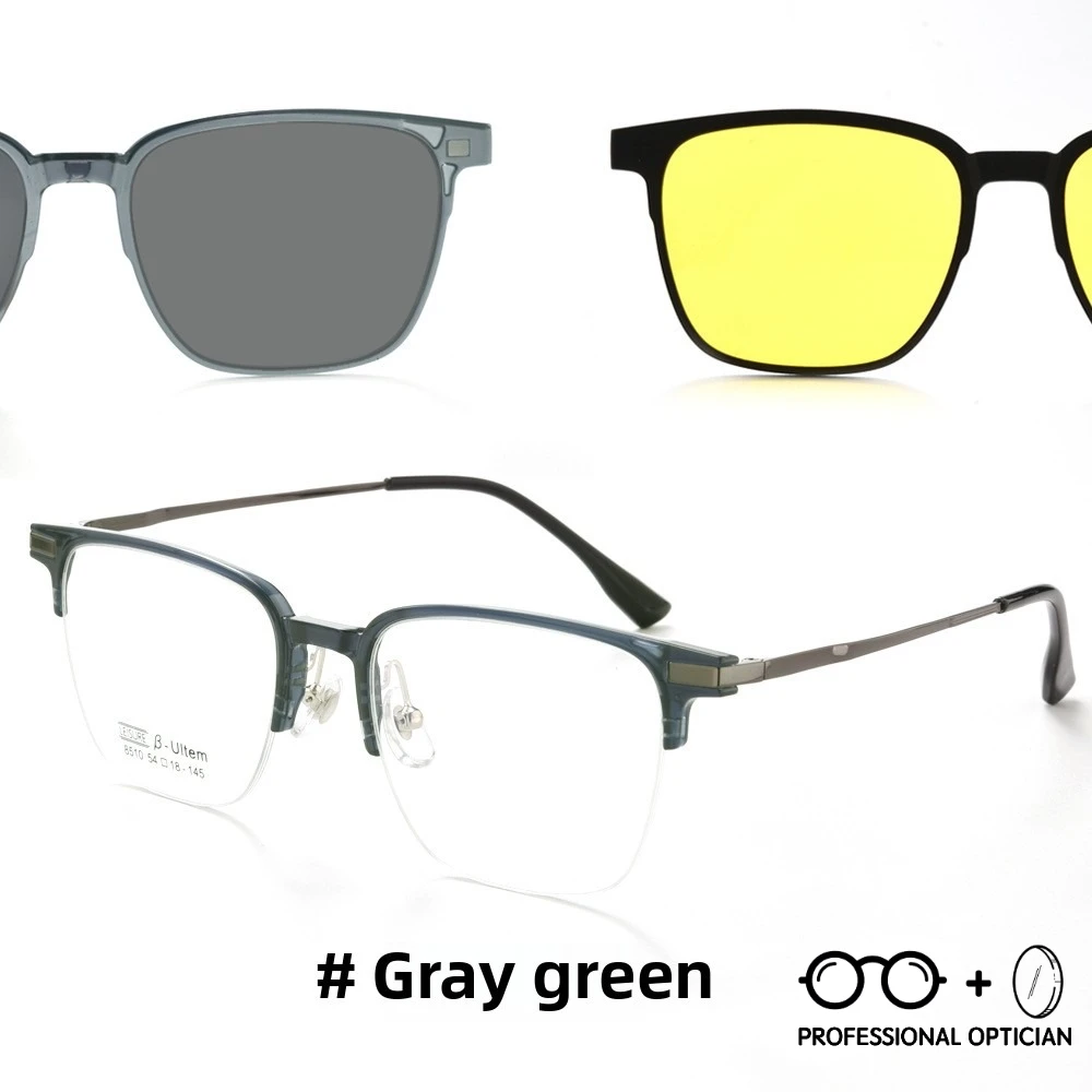 TR90 Magnetic Clip-On Business Sunglasses Night Driving Prescription Glasses Men Eyewear Summer Polarized Myopia Eyeglasses