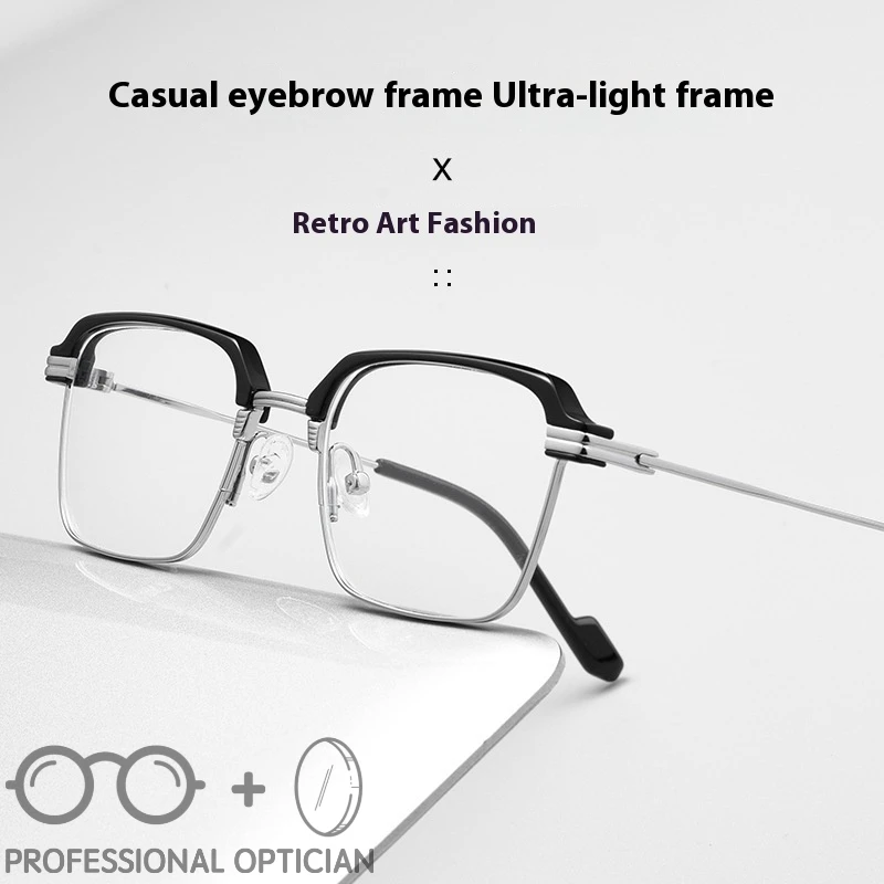 Large Frame for Men with Big Faces Stylish Tough Semi Rimmed Brow Bars High End Myopia Prescription Blue Light Glasses