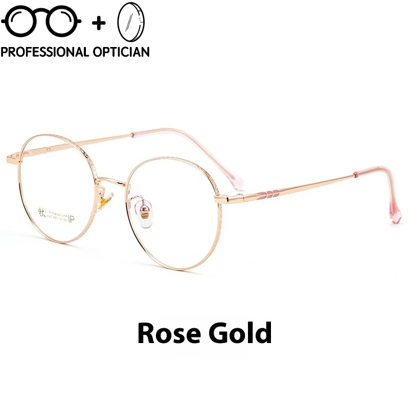 Fashion Retro Style Round Ultra-light Pure Titanium Full Small Blue Light Prescription Glasses Women Oculos De Grau Feminino
