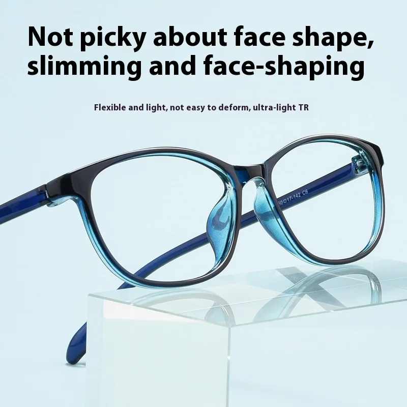 Suitable for Face Shape: SquarenGender: WomennGlasses Structure: Full FramenLens Material: PolycarbonatenFrame Material: TR90nLens Function: Anti-blue lightnnn|High Myopia Eyeglass Frame|High Myopia Frame For Male|nn**Optimal Comfort and Style**nThe New Fashion INS Style High Myopia Frames are designed to offer a perfect blend of style and comfort for both male and female students. The ultra-light TR90 frame material ensures durability and flexibility, while the full frame structure provides a sturdy support for your prescription lenses. The frames come in a variety of colors, including a classic blue frame and a sleek bright black frame, allowing you to choose the one that best suits your personal style.nn**Versatile and Functional Design**nThese frames are not just about looks; they are designed with practicality in mind. The round frame shape complements a variety of face shapes, including square faces, making them a versatile choice for a wide audience. The anti-blue light lens function is a modern touch, reducing eye strain and fatigue during long hours of screen time. Whether you're studying, working, or socializing, these glasses are the perfect accessory to enhance your visual comfort and clarity.nn**Tailored for Your Vision Needs**nUnderstanding that everyone's vision needs are unique, the frames are designed to support myopia glasses, accommodating a range of prescription powers. The lens index options available include 1.56, 1.61, 1.67, and 1.74 aspheric lenses, catering to diverse vision correction needs. The lenses are made from high-quality polycarbonate, ensuring durability and scratch resistance. With these frames, you can enjoy a clear, comfortable vision without compromising on fashion.