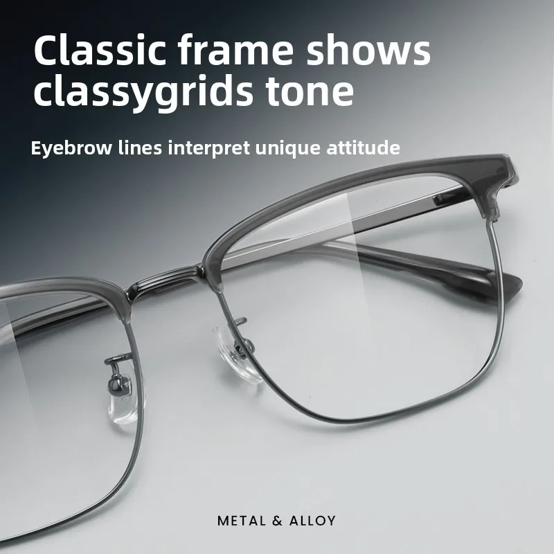 Large Frame for Men with Big Faces Stylish Tough Semi Rimmed Brow Bars High End Myopia Prescription Blue Light Glasses