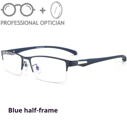 Business Full Frame High Quality Alloy Elastic Temple Myopia Hyperopia Astigmatism Anti Blue Light Prescription Optical Glasses