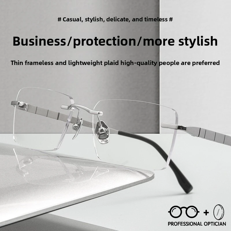Ultralight Pure Titanium Simple Rimless Business Myopia Anti BlueLight Glasses Men Optical Prescription Multifocales Progresivos